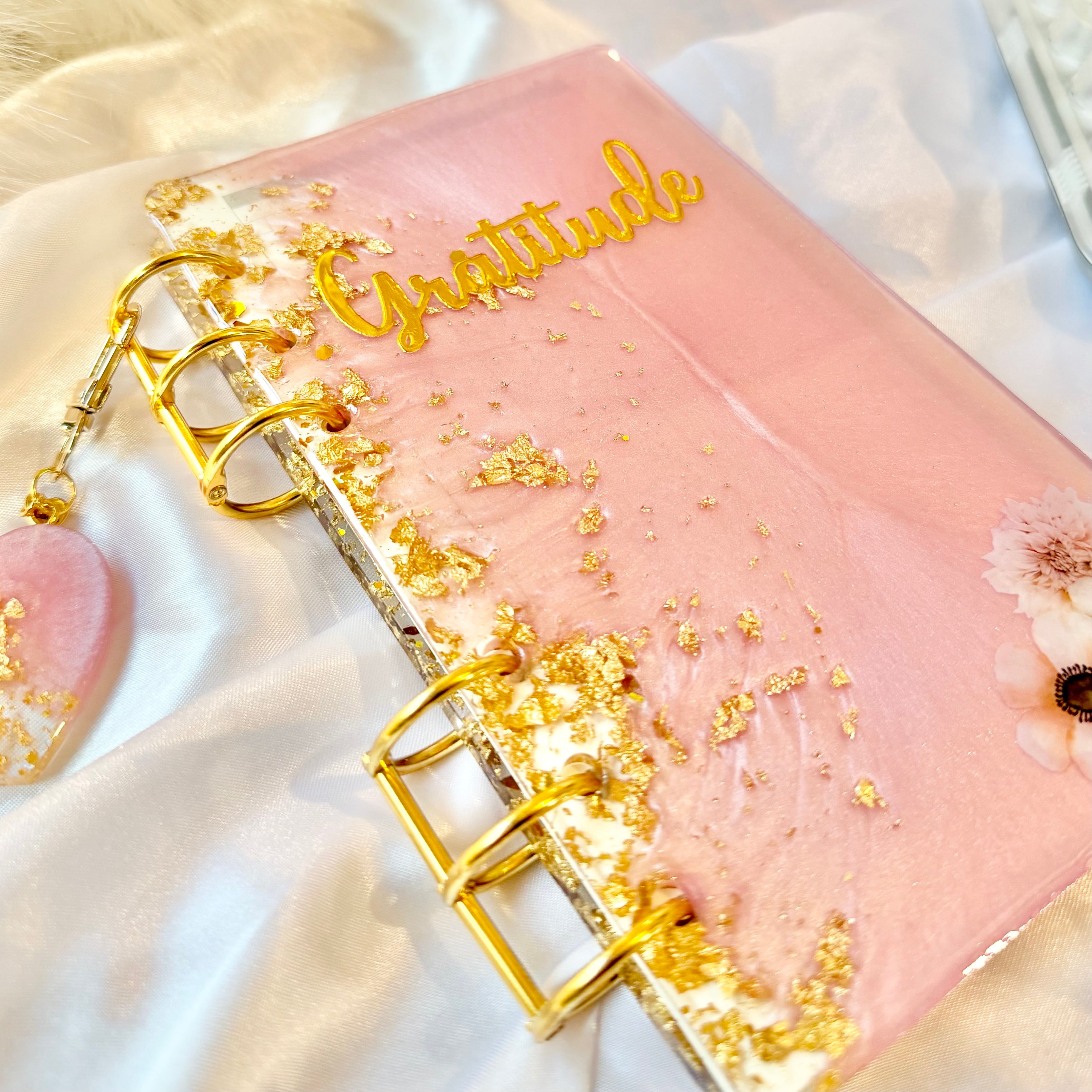 こちらの作品はベビーピンクとゴールドのハンドメイドバインダーになります。